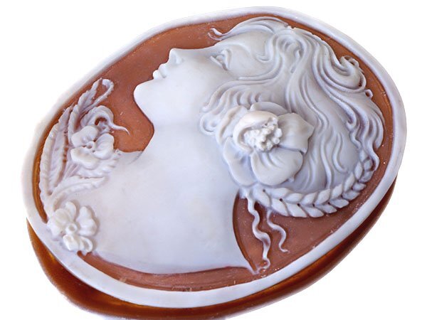 > 【ジュエリー極】Aフルーリオ作 美しい貴婦人の彫刻 高級シェルカメオルース 70.3mm×54.3mm w5691o【送料無料】