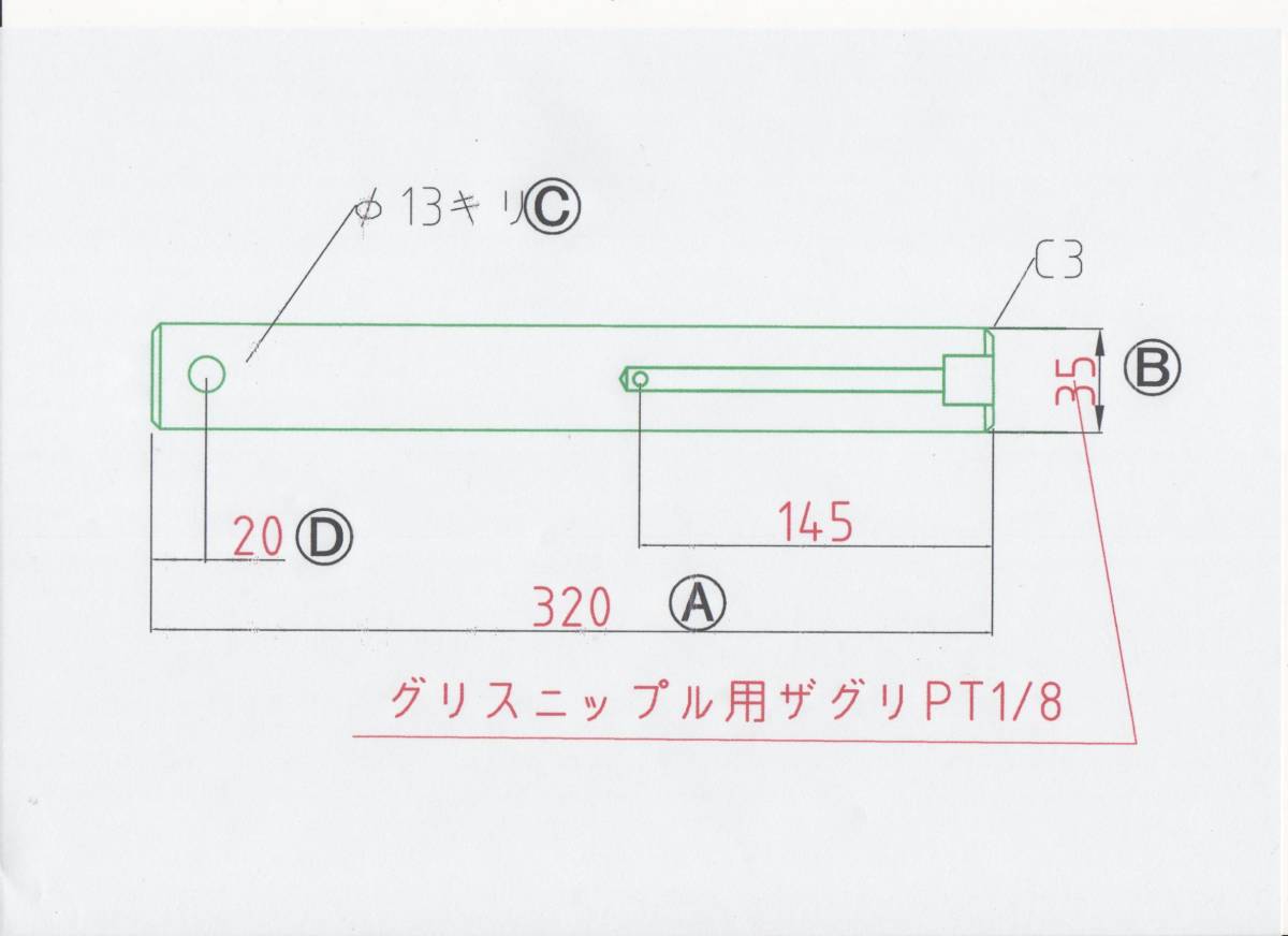 - NO1466 Φ35用 全長320mm グリス穴付きバケットピン 1本