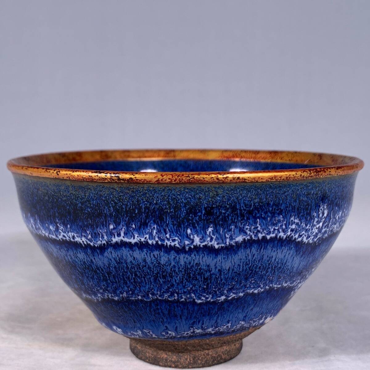 - 蔵友旧蔵出 宋 建窯 藍釉 包口 窯變 天目盞 稀少珍品 貴重品 古陶瓷品 置物 古賞物 中国古玩 中国古美術品