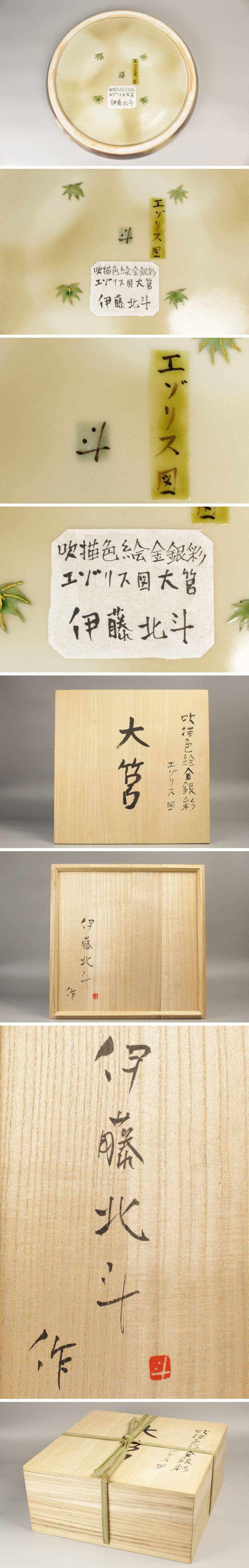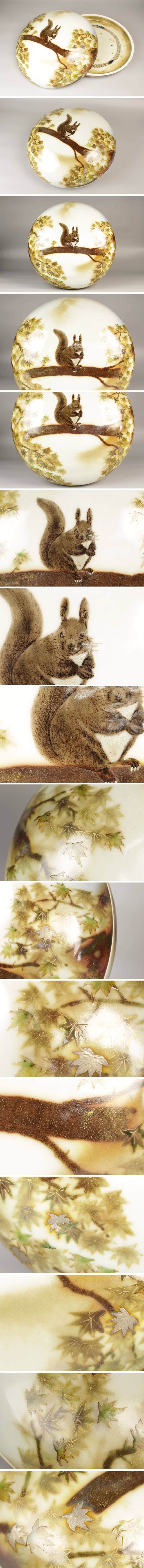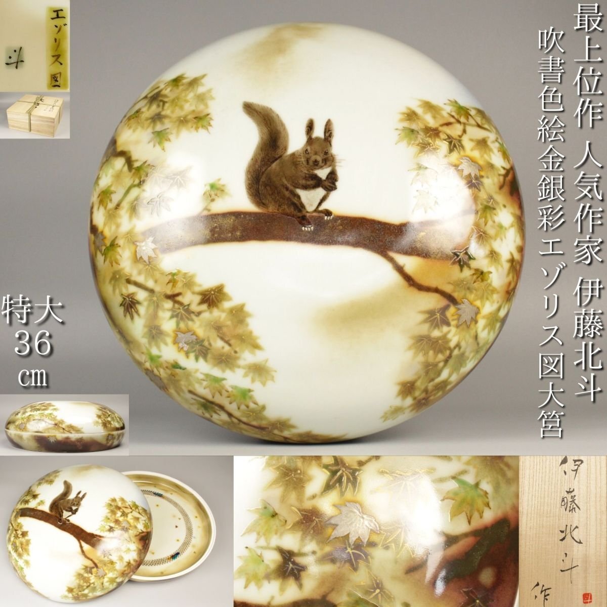 > 【LIG】最上位作 人気作家 伊藤北斗 吹書色絵金銀彩エゾリス図大筥 特大36㎝ 共箱 美品 師人間国宝 藤本能道 資産家収蔵品 [.YI]25.09
