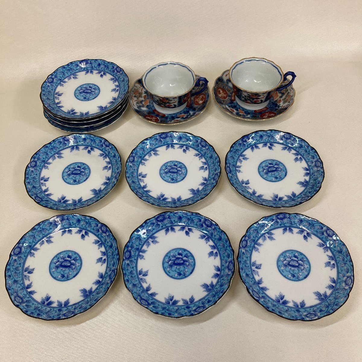 - 龍峰窯 小皿 カップ ソーサー 有田焼 三洋陶器 輪花皿 青華 取皿 染付花紋 和食器 中古 食器 まとめて /904