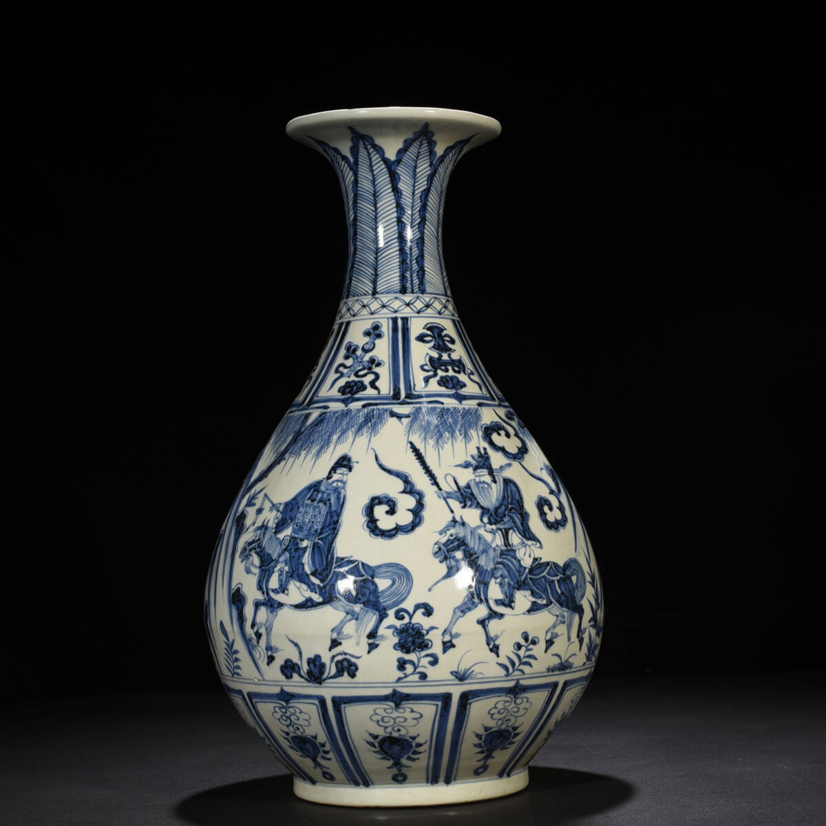 - 元時代 青花 染付 人物文玉壺春瓶 唐物 箱付き 陶磁器 中国美術 古美術 置物 骨董品 H15
