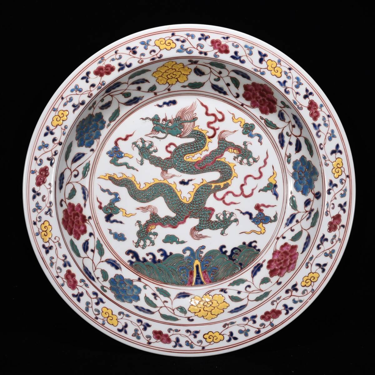 > ◆珍蔵◆中国古美術 大明宣徳年製款 五彩 古陶磁 龍紋大盤 精品 細密細工造 置物 擺件 骨董品 古賞物 時代物