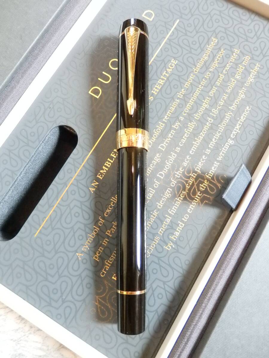 > ◆【ほぼ未使用】【送料410円】パーカー デュオフォールド ブラックGT センテニアル万年筆 ペン先:18K750ソリッドゴールド F