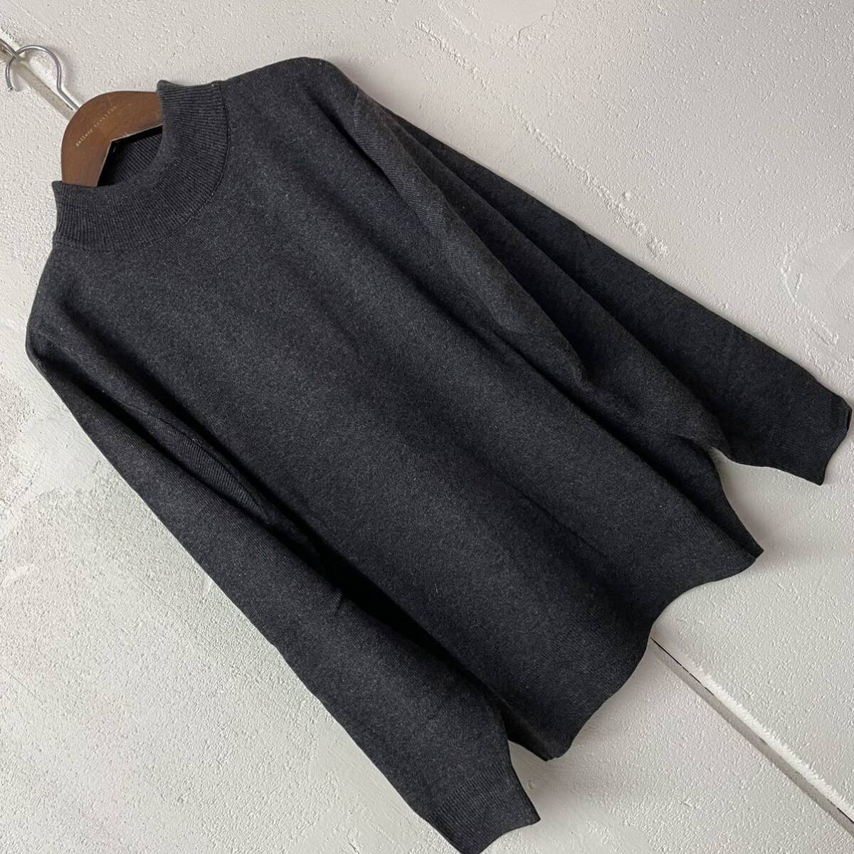- Sサイズメンズお家で洗えるウール混ハイネックセーター チャコールグレー