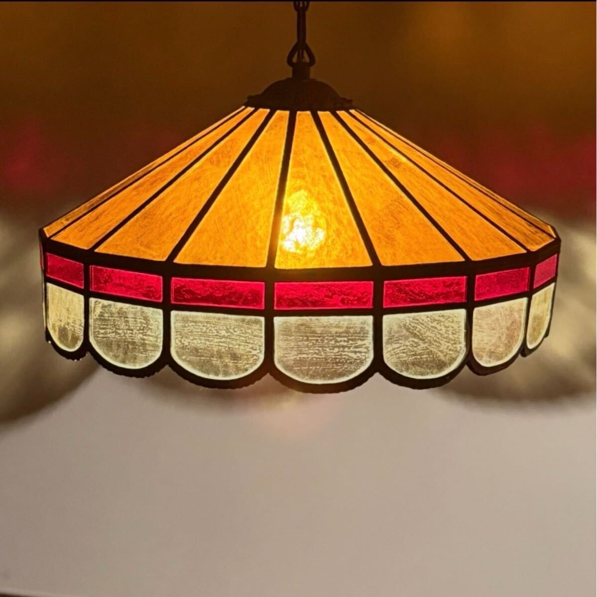 - H15K63c ステンドグラス ペンダントライト ガラス照明 照明器具 ダイニング照明 リビング ヴィンテージ ライト 昭和レトロ 天井照明