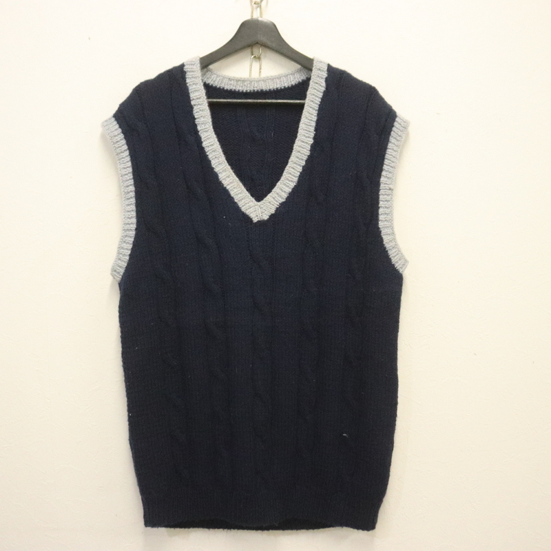 > J911 90sビンテージ アクリルニットベスト■1990年代製 Lサイズくらい ネイビー 紺 無地 ケーブル編み 2トーンカラー アメカジ 古着 激安