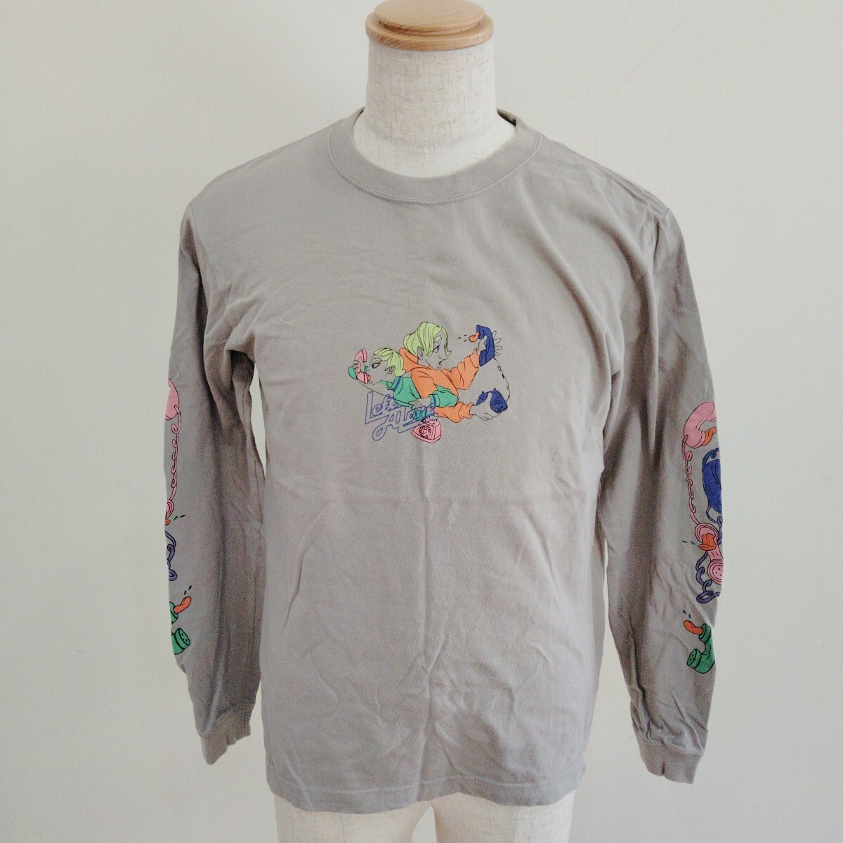 - 198/M/LEFTALONE ユニセックス ロンT 長袖 カットソー 綿100 イラスト グレー