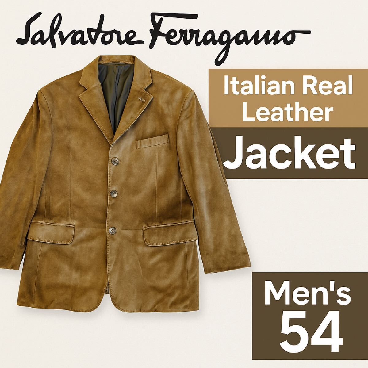- フェラガモ 本革 スエード調 テーラードジャケット メンズ 54 XL相当