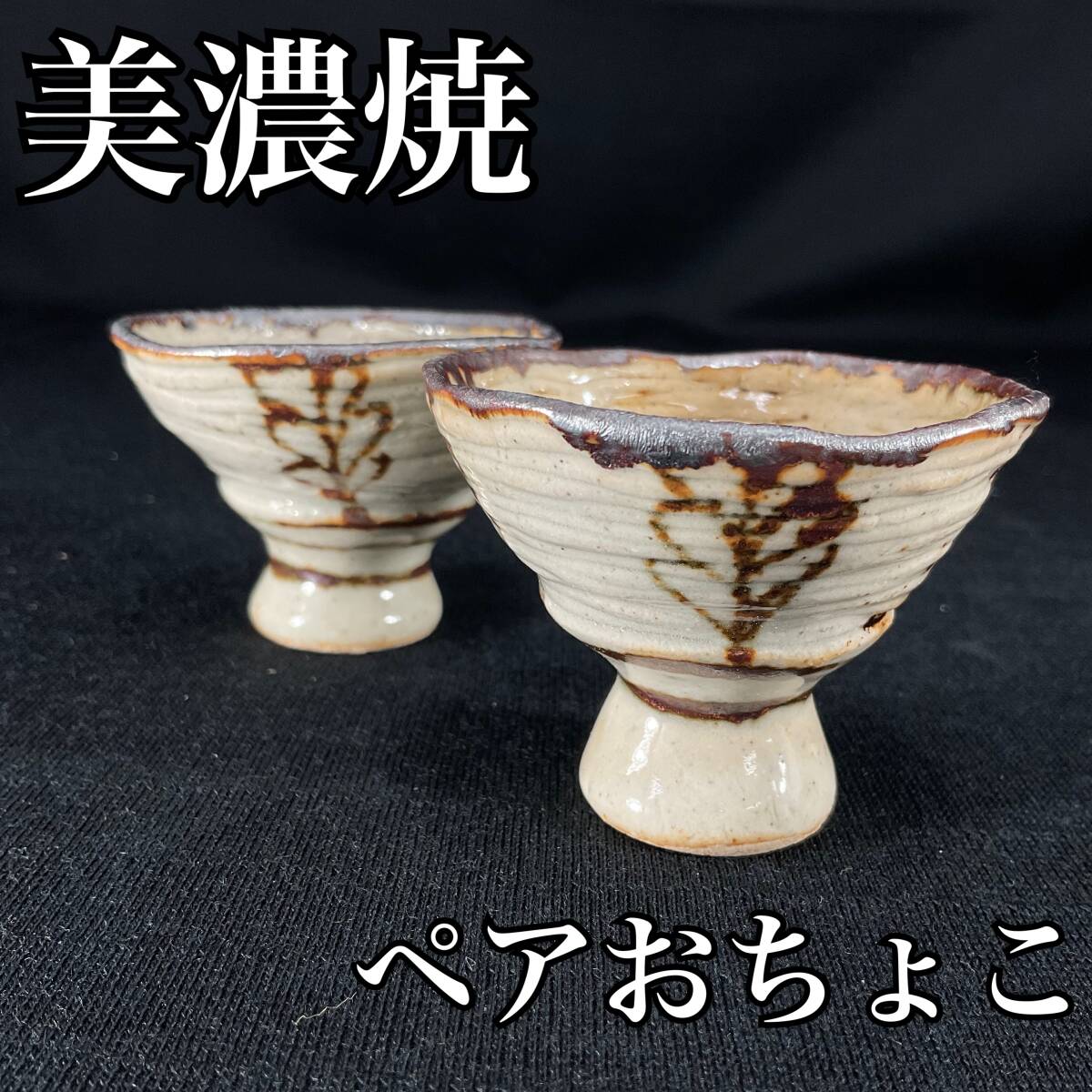 - 【未使用】美濃焼 手造り ペアお猪口 2客セット 陶器 酒器 おちょこ コレクション(E291)