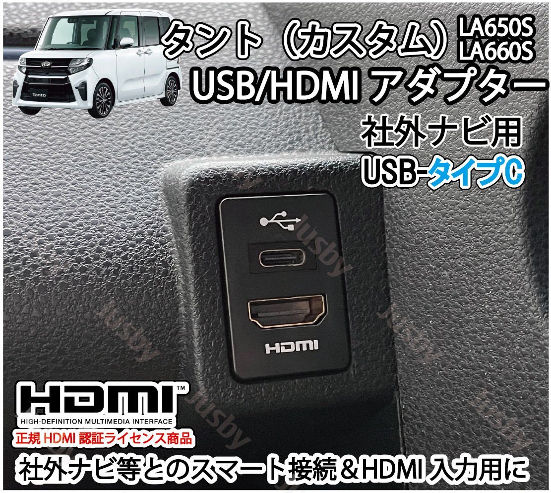 > ダイハツ タント/タントカスタム(LA650S/LA660S)用 USB/HDMIアダプター (社外ナビ用/USBタイプC) カーナビ HDMI入力 ミラーリング パーツ