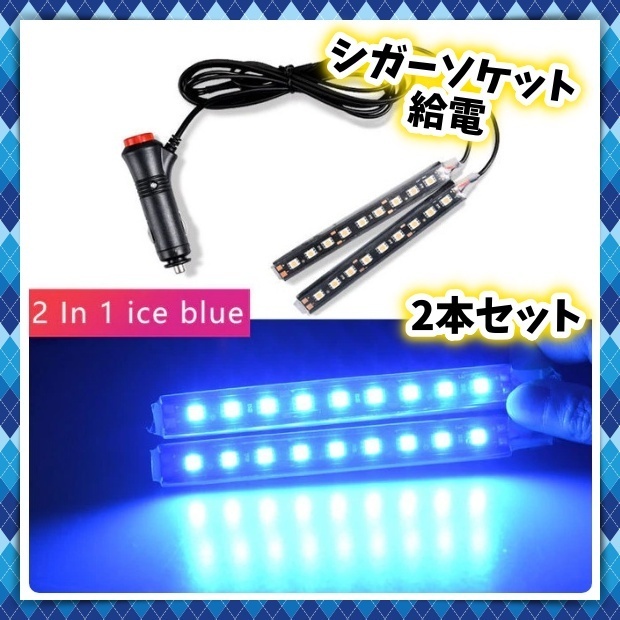 > 2本 18 LED フロアライト フットランプ シガーソケット 電源 スイッチ付き アイスブルー 車内 内装 足元 照明 装飾 LEDテープ 12V 汎用