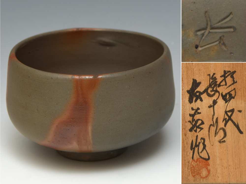 > 十四代 長十郎 木村友敬(造)備前 火襷茶碗 共箱 陶磁器 茶道具 岡山県 美品 木村興楽園 u1082o