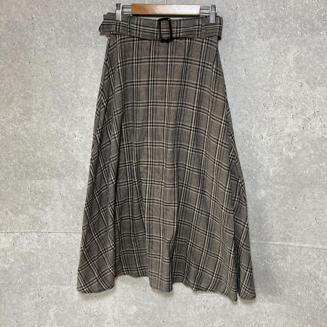- グレイル(M)ベルト付チェックフレアスカート*ロング丈*オールシーズン*グレー