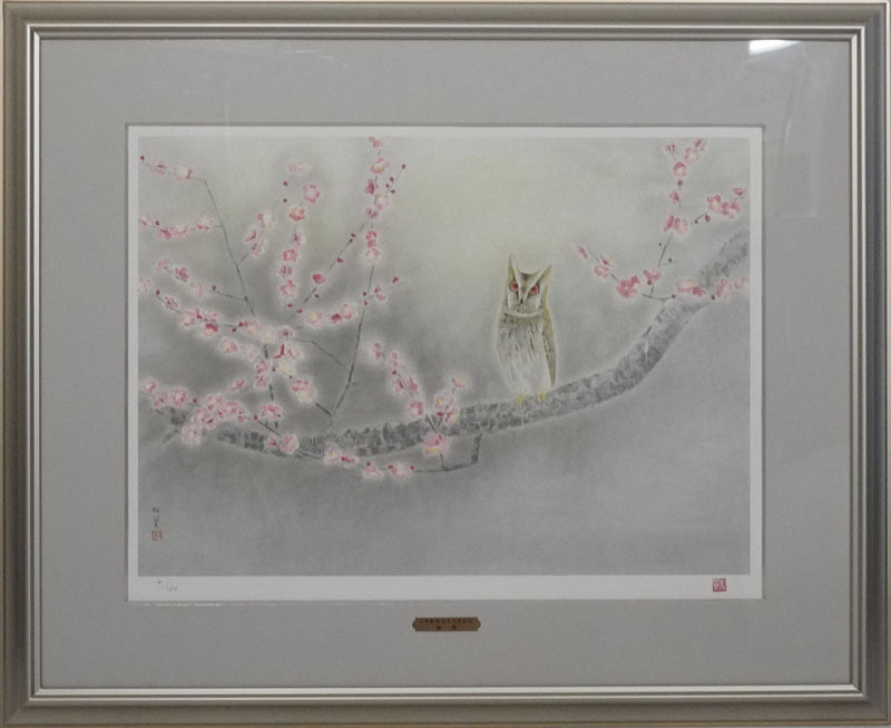 - 【J116】真作保証 上村松篁 「春宵」 リトグラフ 直筆サイン・落款・エディション・作品証明シール 白寿記念 限定150部 タトウ箱