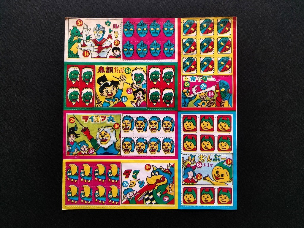 > 当時物 まんが くじ紙 未使用 パチ キカイダー ウルトラマンA 特撮ヒーロー 人気者 !! ☆ おんぶーおばけ ライオン丸 駄菓子屋 昭和レトロ