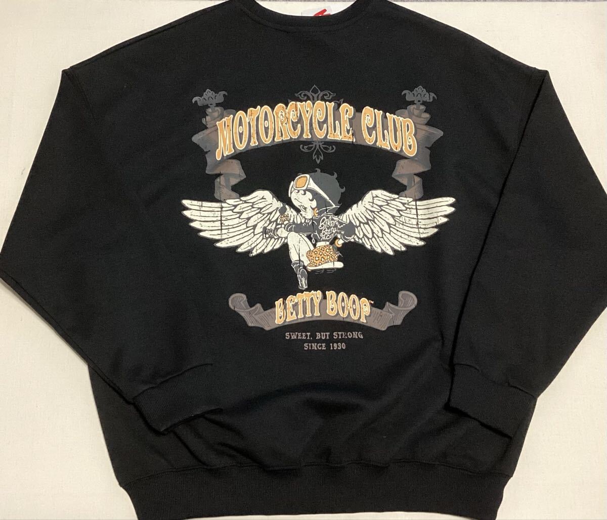 - BETTY BOOP(ベティブープ)トレーナー(スウェット)◇Lサイズ◇黒◎長期保管・未着用品◆ベティ振り向きバイカー◆ベティちゃん◎バイク