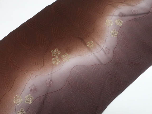 - 《京都一輝堂》リサイクル着物 未使用品 帯揚げ 帯揚 流水に花 金糸 sok7w06-26