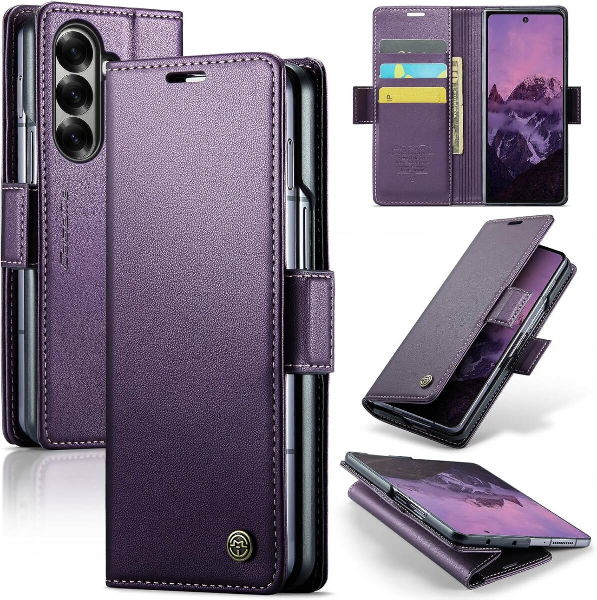 > Samsung Galaxy Z Fold 7 対応 ケース 手帳型 PUレザー 磁気バックル付き スタンド機能付き カード収納 パープル ay637