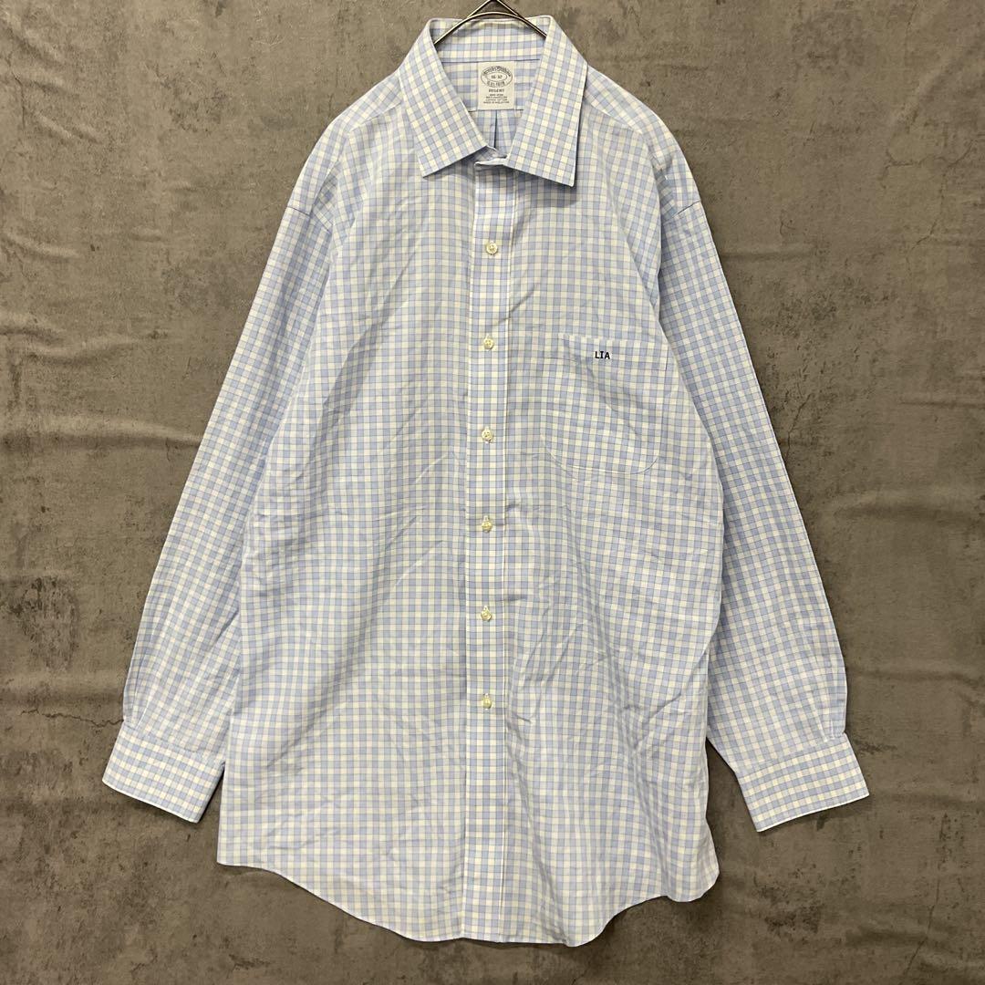 - ブルックスブラザーズ 長袖シャツ 水色×白 チェック柄 L相当【5745】