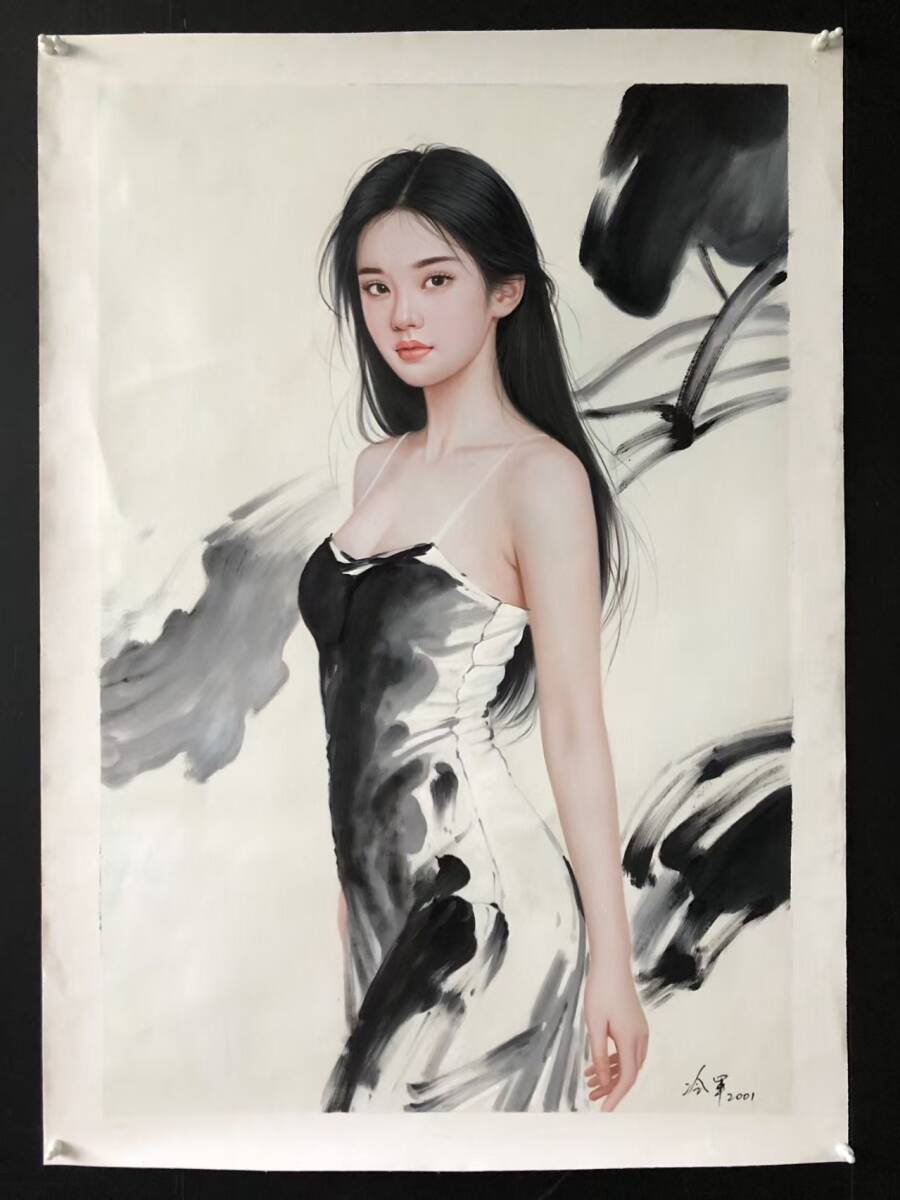 - 油彩 絵画 早期收集 h3 美女》美人畫 】手描き布油絵 油畫 旧藏 中国古画 純手描き画 古美術品 時代物 中国古玩 骨董品 925