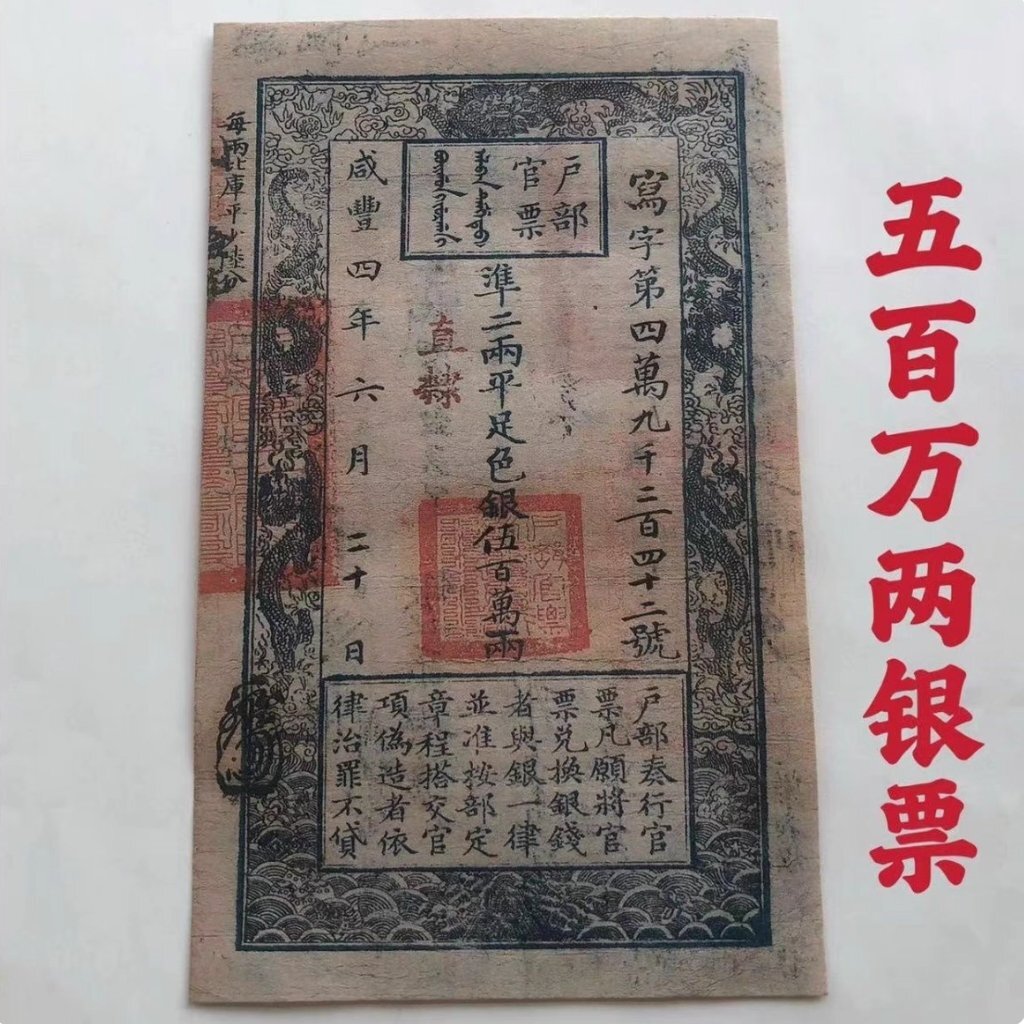 - 送料無料 中国紙幣 銀票 古銭 清 咸豊四年 五百万両 戸部官票 美品 外国紙幣 簡易包装 郵便発送 ZH535