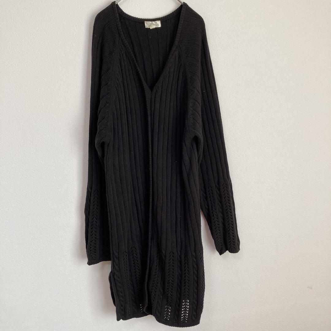 - レボリューション(F)ロングニットカーディガン*Vネック*透け感*リブ*スリット