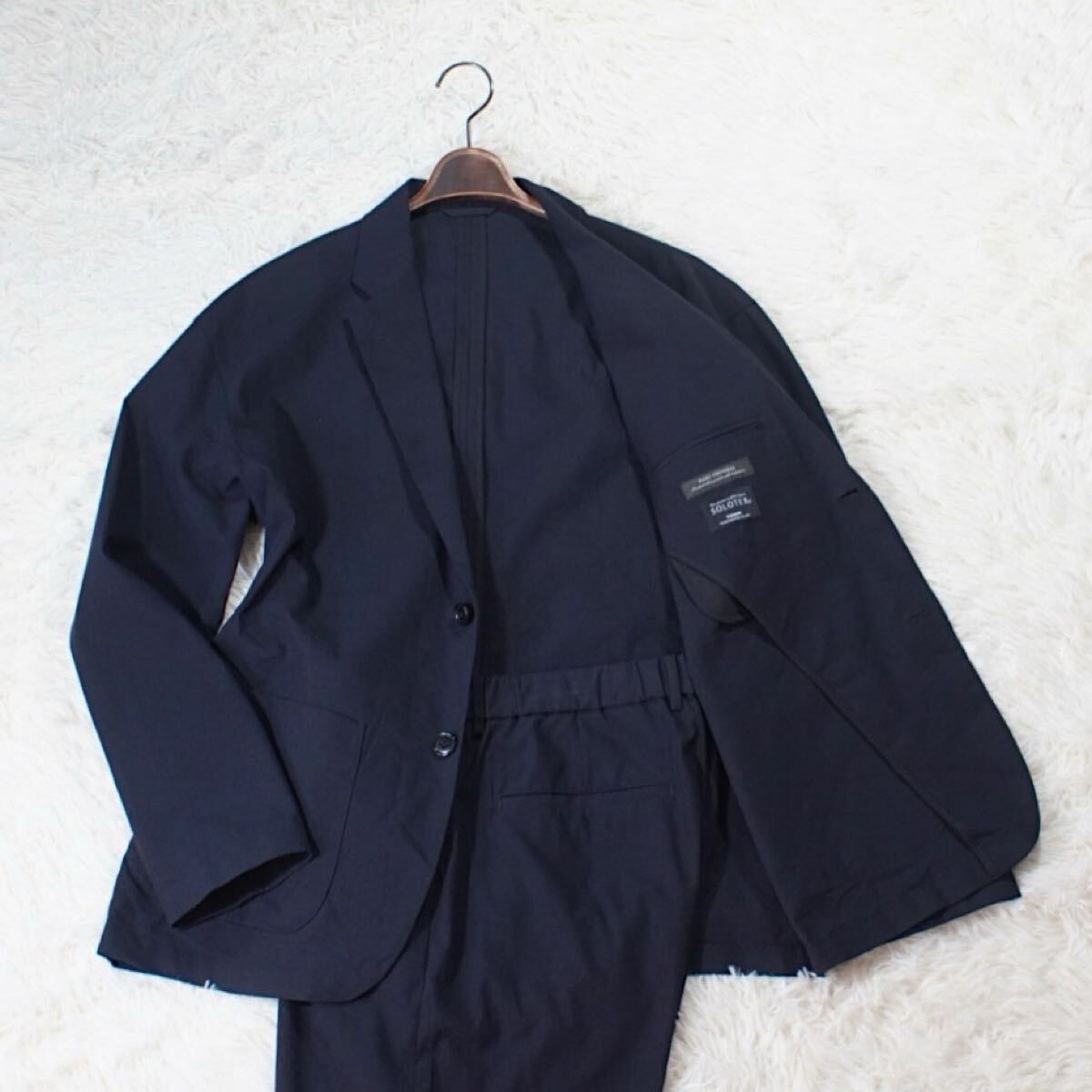 > ソロテックス ストレッチ《ナノユニバース》セットアップ(L)黒 リネン 高機能素材 SOLOTEX テーラードジャケット nanouniverse スーツ