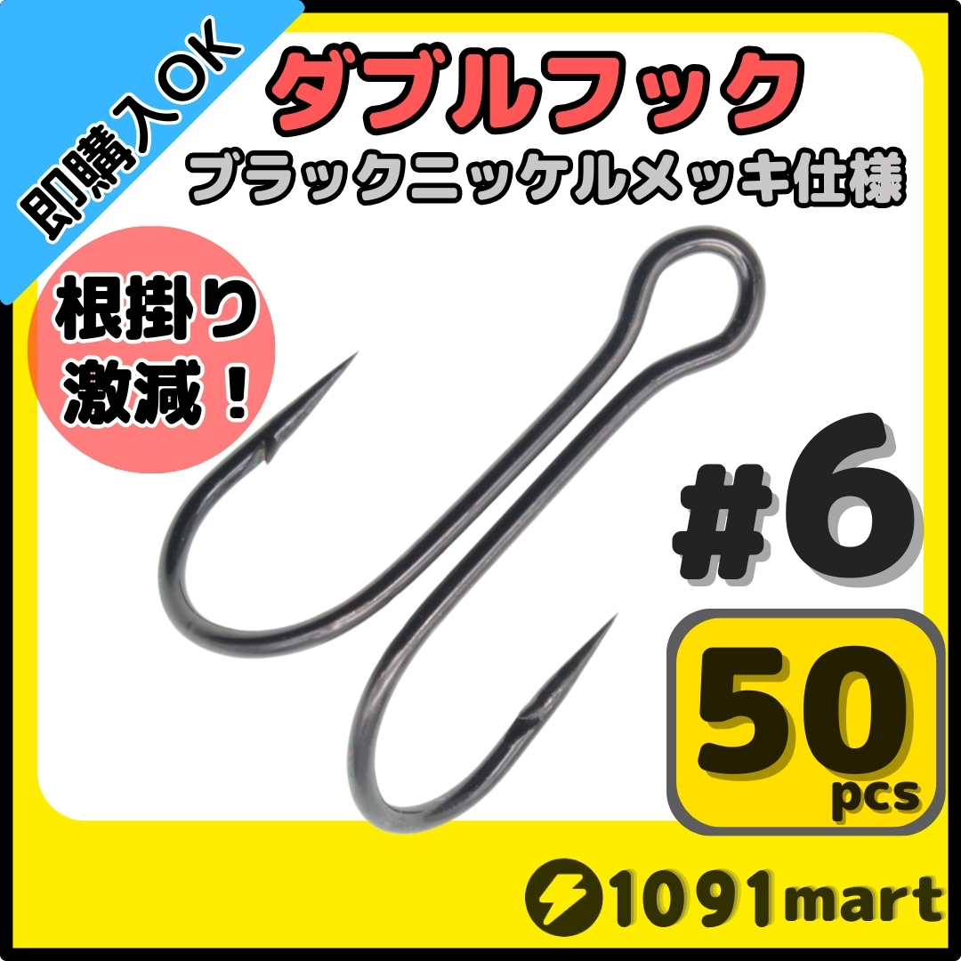 > 【送料150円】高炭素鋼 ダブルフック ブラックニッケルメッキ仕様 #6 50本セット ソルト対応 メタルバイブ バイブレーションに!