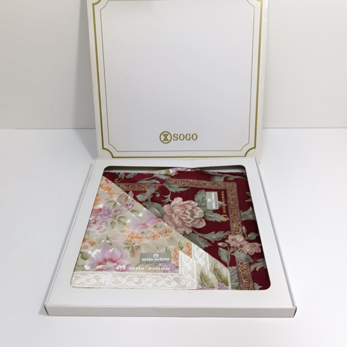 - mila schon ミラ・ショーン 牡丹柄 ハンカチ 50cm×50cm 綿100% 2枚セット 未使用品 [SOGO そごうデパート]