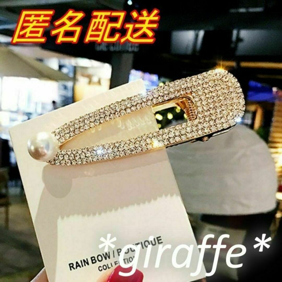 - E263 匿名配送 ヘアクリップ ラインストーン パール ゴールド 髪留め 前髪クリップ サイドグリップ