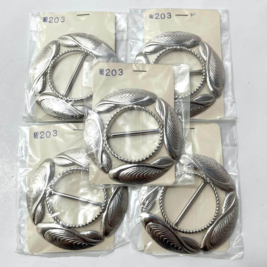 - ば19【希少まとめ売り】アンティーク シルバーバックル 5個セット 金属パーツ ◇バッグ修理・ベルトリメイク・衣装製作 丸型葉っぱモチーフ
