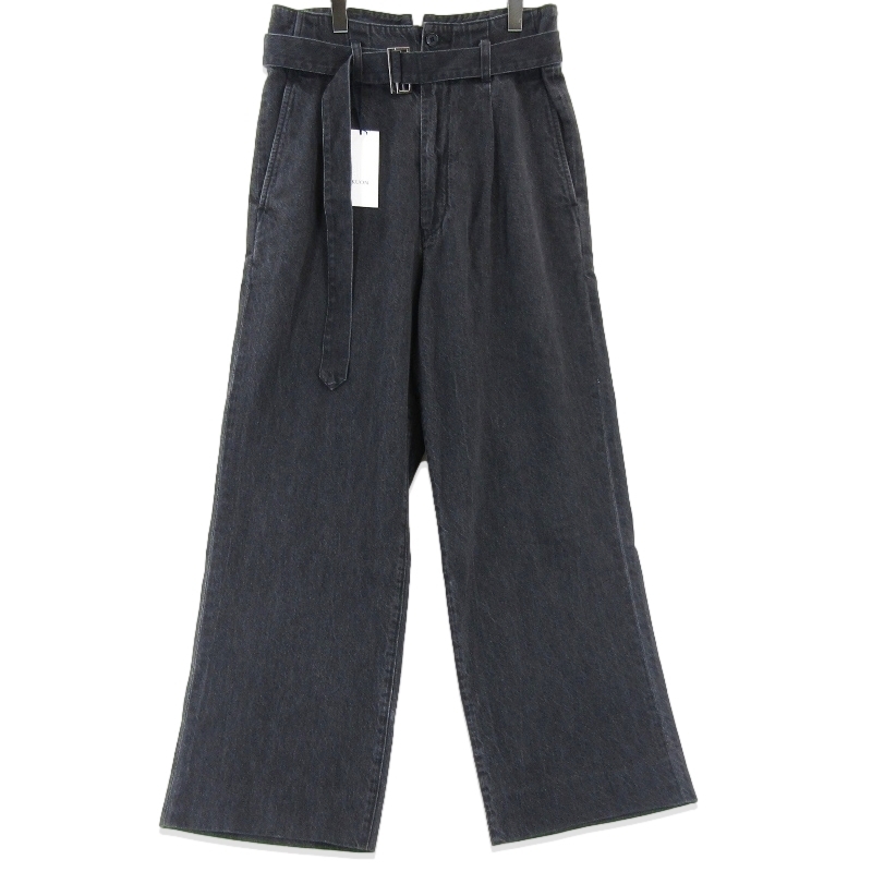> 未使用 KUON クオン Single Pleated Denim Belted Trousers 115PT070800 デニムパンツ ブラック 黒 L タグ付き 18001070