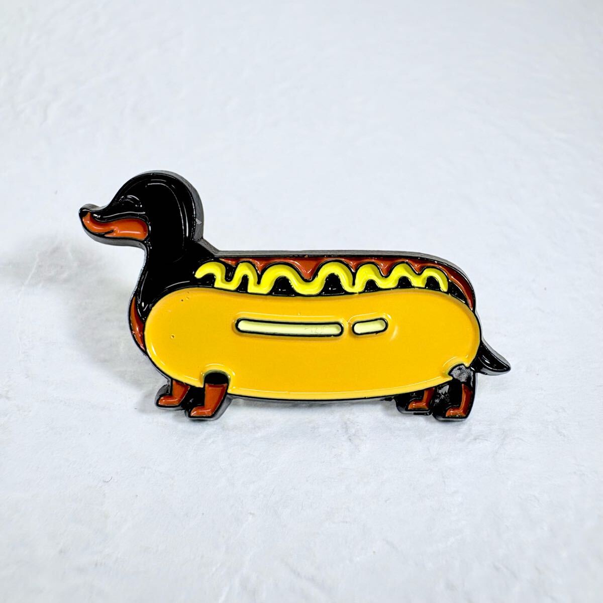 - 【ピンバッジ】ダックスフンド ホットドッグ 犬 食べ物