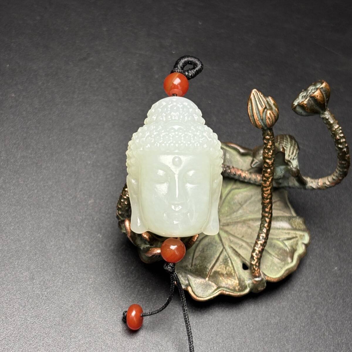- 『館蔵珍品 和田玉製 細密彫 佛首 置物 賞物』文房具 書道品 貴重物品 収蔵品 中国古美術 時代物 古董品