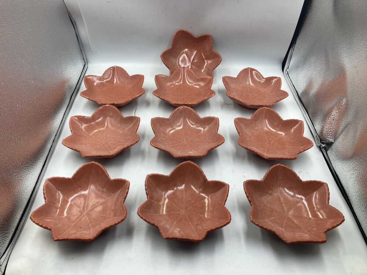 - 美品 赤楽 紅葉 京焼 向付 10客 日本料理 懐石料理 京焼 刺身皿 焼物皿 先付け 希少な赤楽 在庫残りわずかです