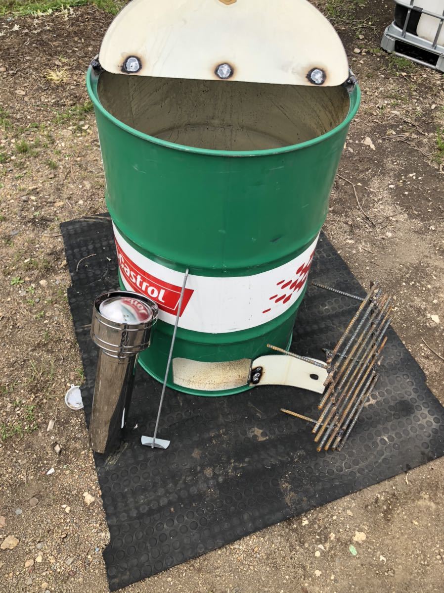 - 焼却器 ドラム缶 灰かき棒 ステンレス煙突 100直径 ロストル 200リットル