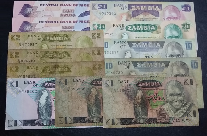 - ☆【外国紙幣・旧紙幣】南アフリカ ザンビア クワチャ紙幣・ナイジェリア 5ナイラ/古紙幣 お札 コレクション 美品・並品