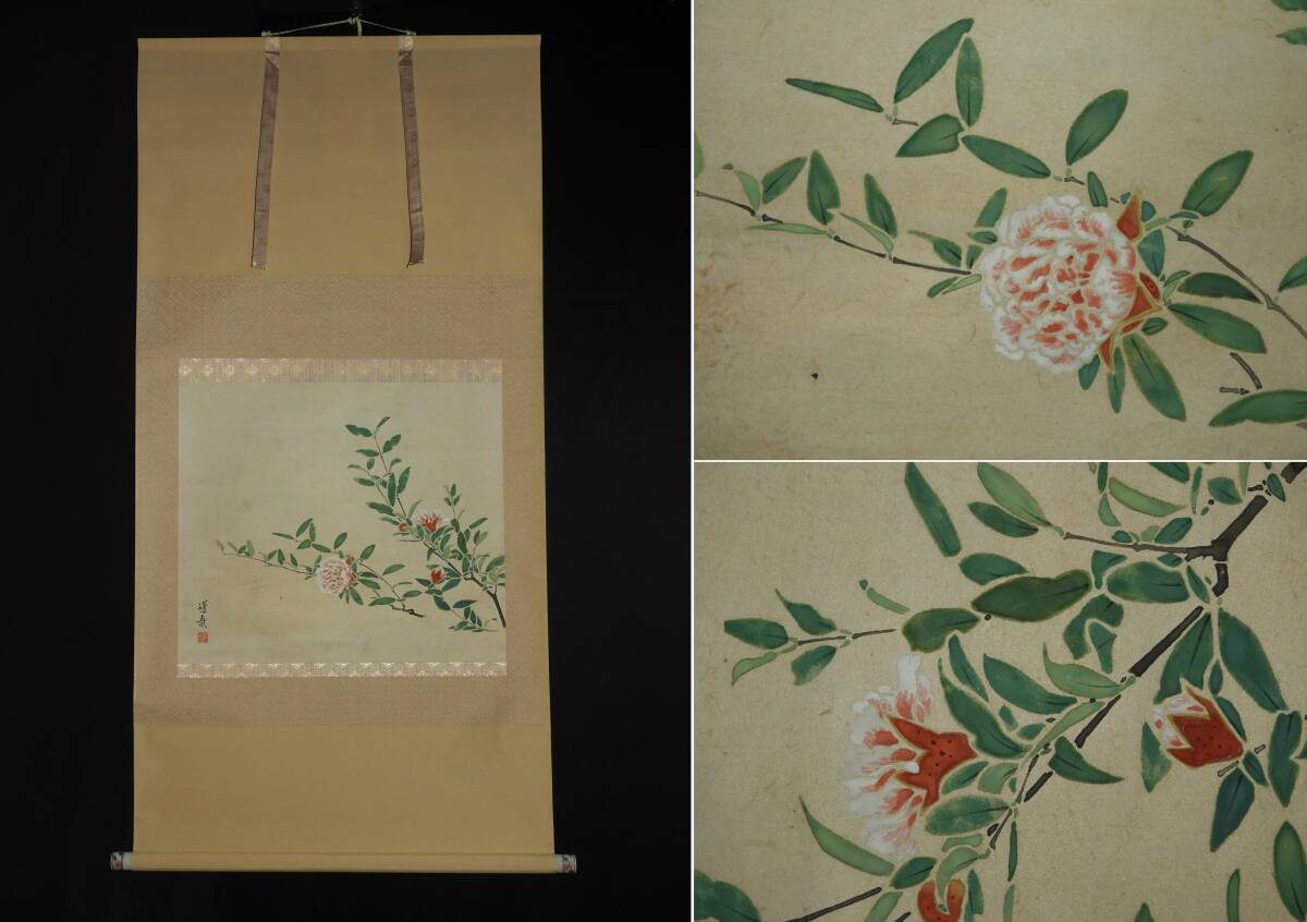 - 模写 山口蓬春 (ざくろ花)掛軸 骨董 絵画 書 古物