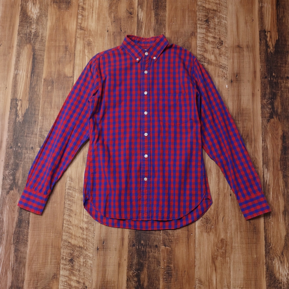 - 美品 ダブテイル Dovetail ギンガムチェック ボタンダウンシャツ メンズ カジュアル 長袖 オールシーズン Mサイズ レッド/ブルー LY34