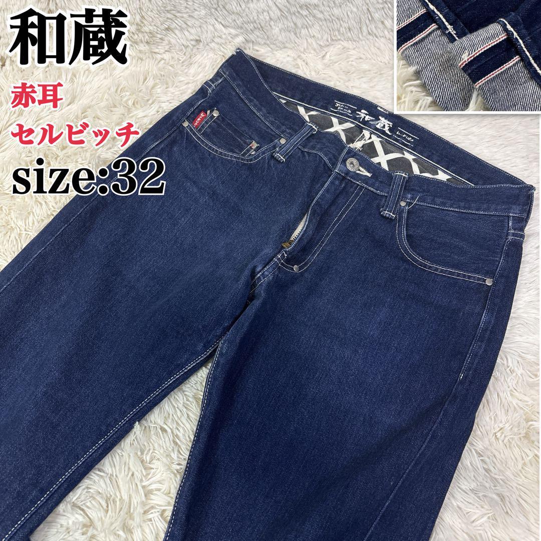 - 和蔵デニム 赤耳 セルビッチ メンズ ストレート インディゴ サイズ32 濃紺 セルビッチ 赤耳 革パッチ 綿100% 倉敷デニム ストリート限定