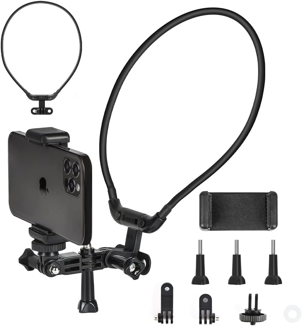 - ● 首掛け GoPro用アクセサリー スマホホルダー付き 多角度調整可能 他 アクションカメラ対応 アクションカメラ用首掛け