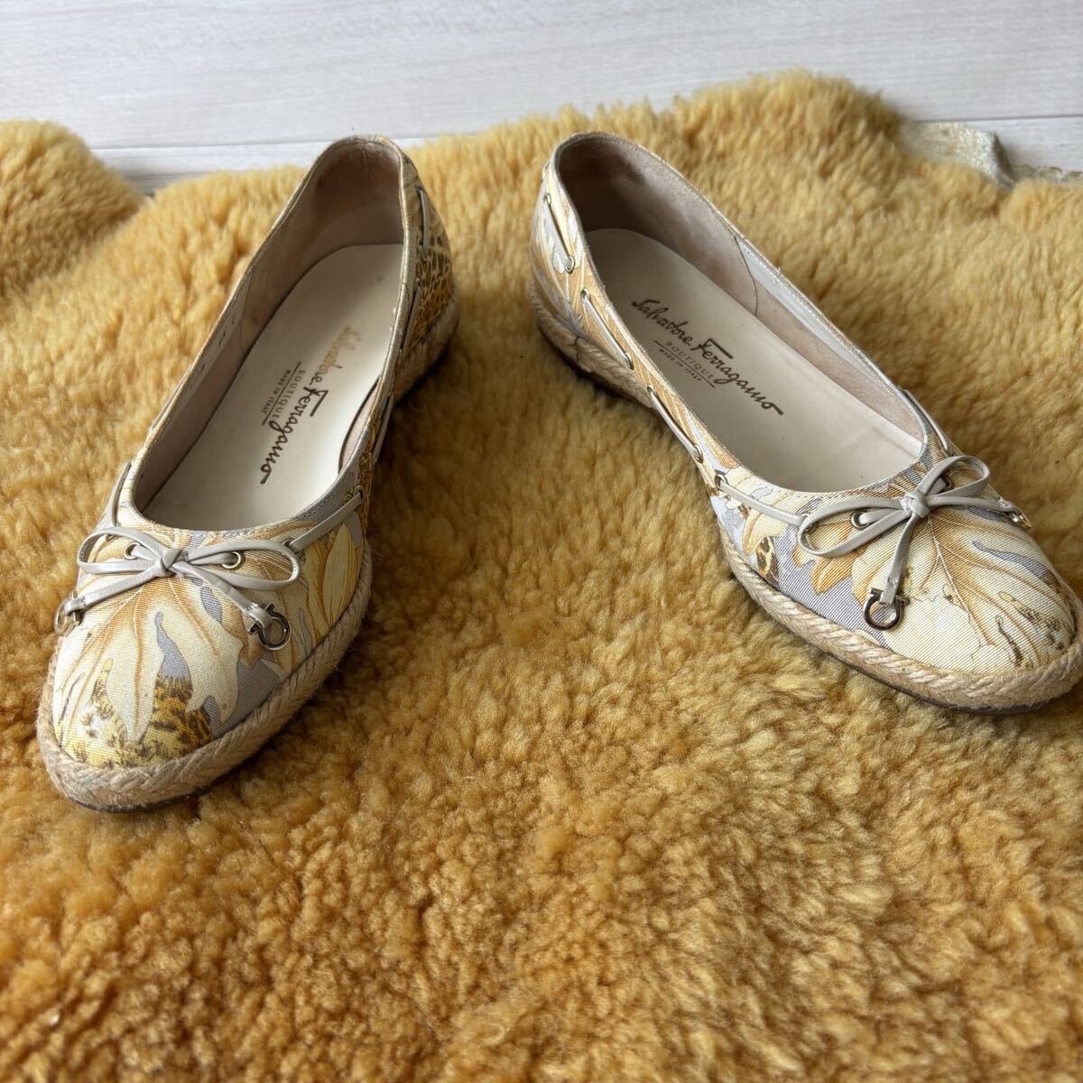 - 【FERRAGAMO】フェラガモ パンプス ガンチーニ ヒョウ柄 エスパドリーユ リボン 6 1/2 23.5相当