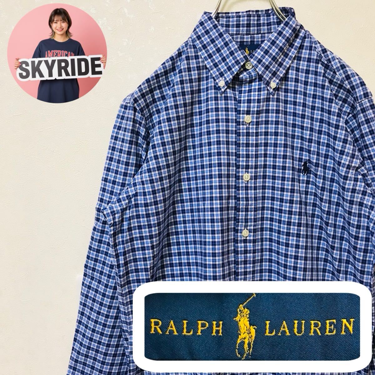 > 【美品】Ralph Lauren ラルフローレン 2000s ボタンダウン 長袖シャツ ブルー S ポニー刺繍 ワンポイントロゴ コットン100% 古着 #TT0341
