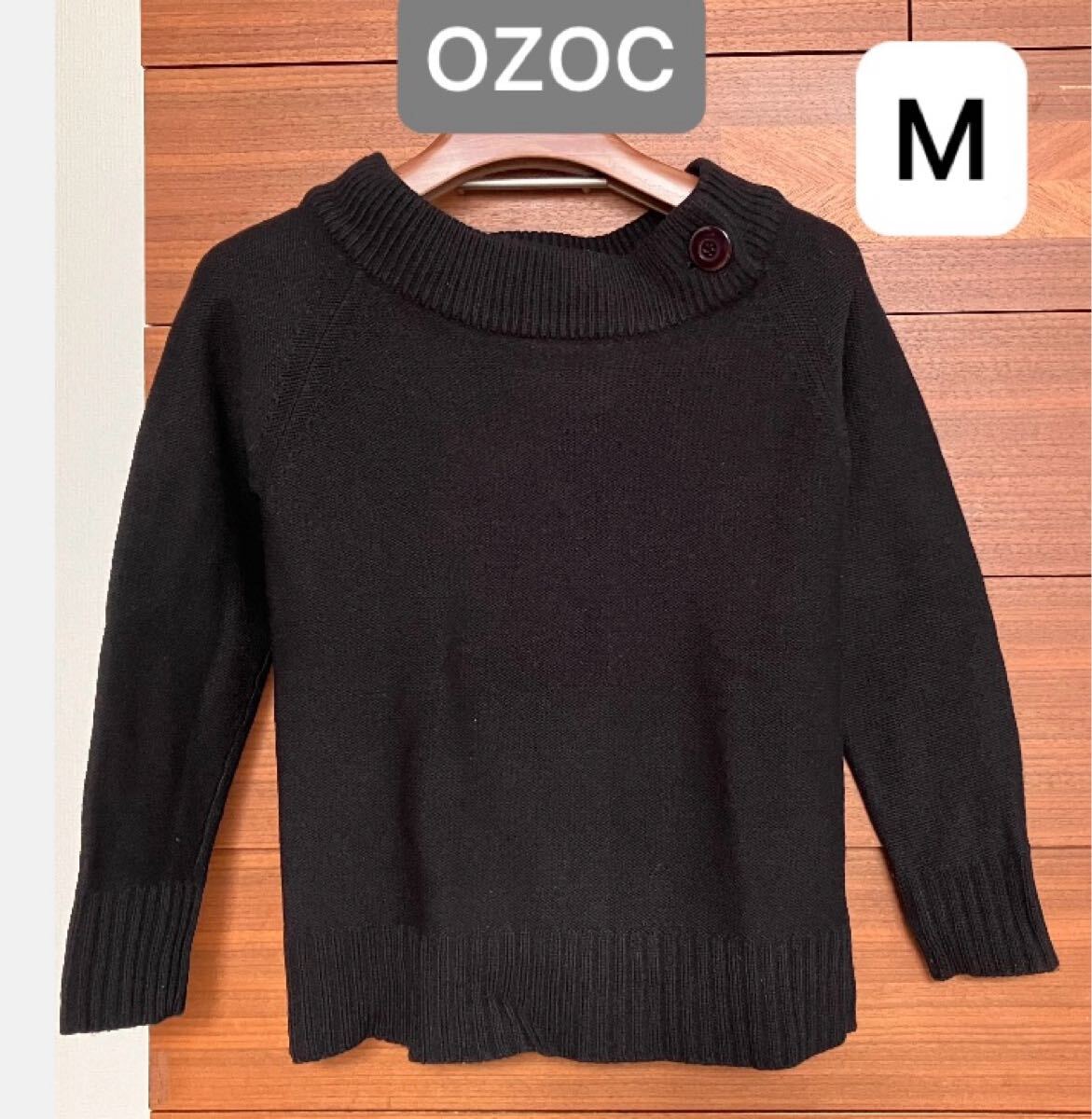 - Mサイズ OZOC オゾック ニット セーター 黒 ボートネック ボタン付き