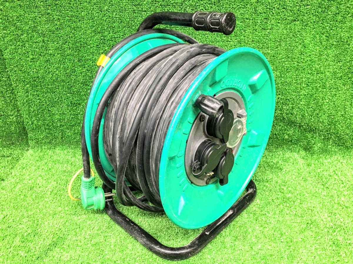 - ②中古品 NICHIDO 日動工業 30m 防雨防塵型電工ドラム RPW-EK33 コードリール