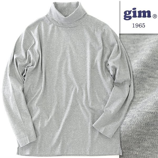 - 新品 gim ジム コットン100% タートルネック カットソー L 灰 【I51637】 秋冬 メンズ ジャージー ストレッチ ニット プルオーバー グレー