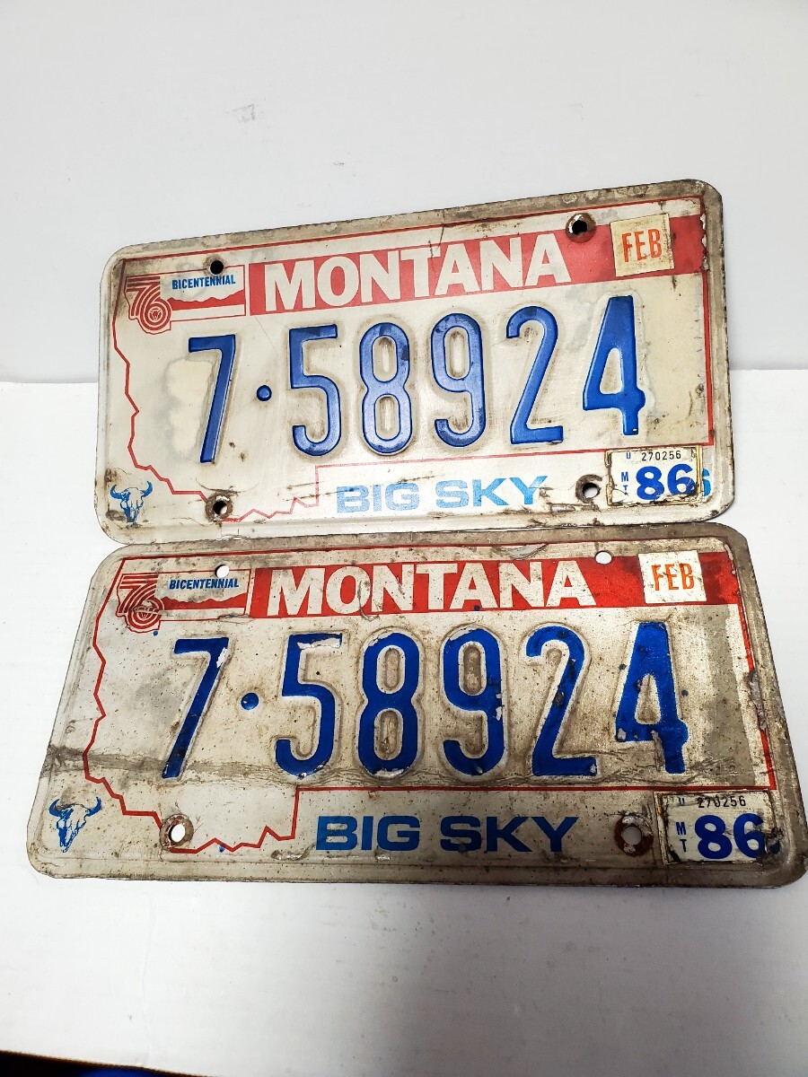 - ヴィンテージ モンタナ州ナンバープレート 前後ペア2枚セット ライセンスプレート 現状 本物プレート No.38
