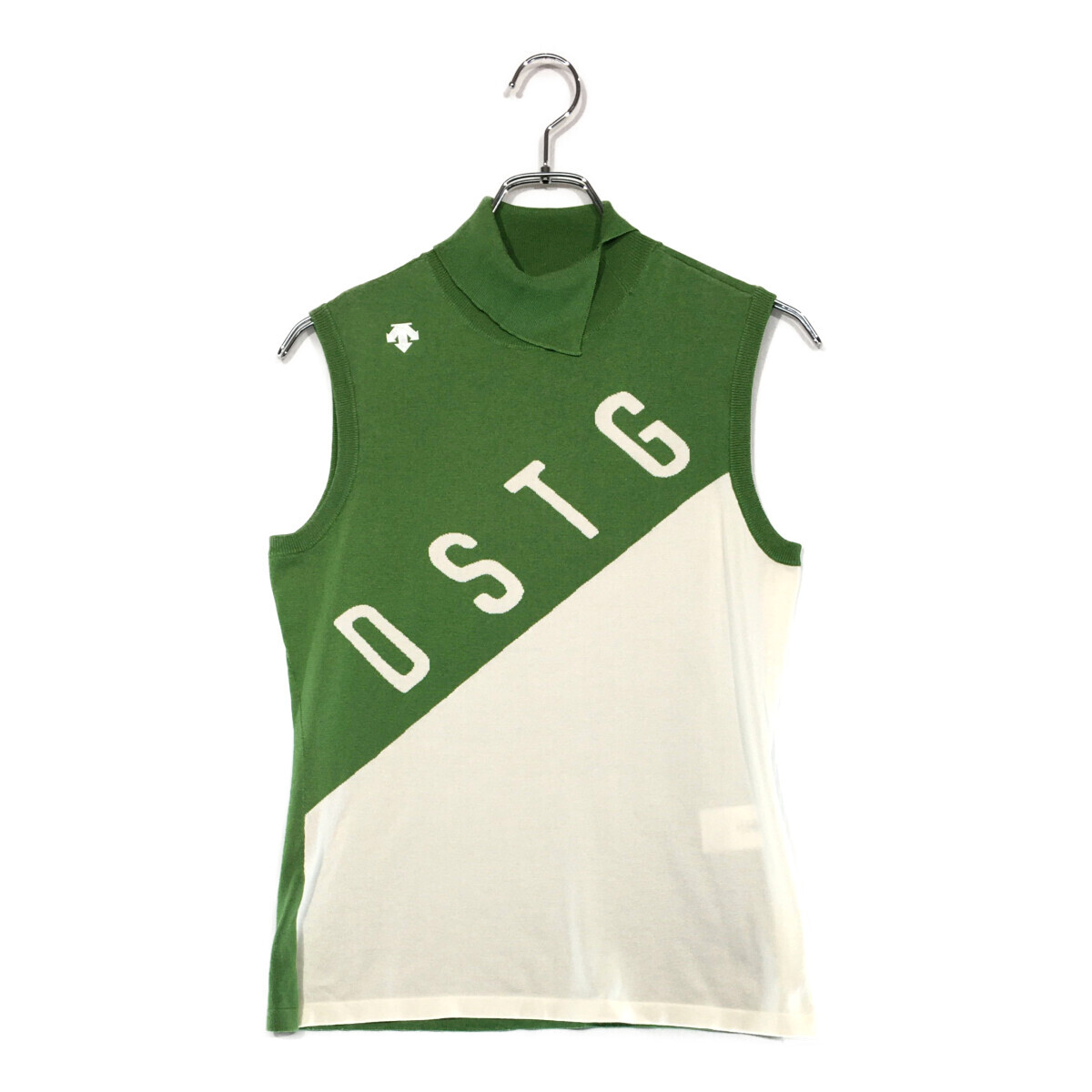 > coco 中古【値下げ】 デサントゴルフ DESCENTE GOLF レディース ニット L 緑×白 ノースリーブ タートルネック ネコパケ発送可 102175