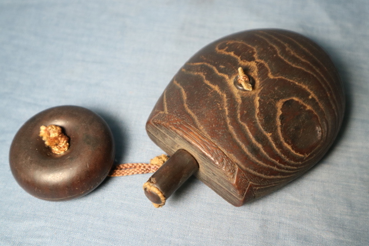 - 提げ物 火薬入 根付 まんじゅう型 検武具マタギ古道具珍品希少骨董オブジェ時代